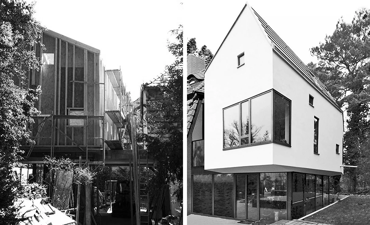Ort: Berlin-Wannsee • Bauweise: Holzrahmen • Größe: Neubau 127 m², Bestand 196 m²